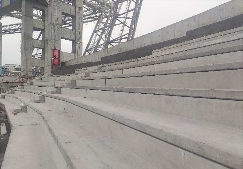 該項目位于榆林市榆陽區(qū)科創(chuàng)新城,是榆地區(qū)第一個大型裝配式項目,我司為榆林體育中心提供預(yù)制看臺板的生產(chǎn)和安裝。